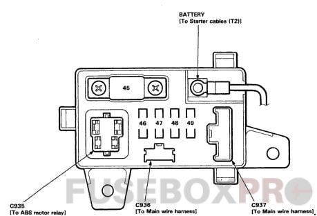 Acura Vigor fuse box and relay Diagram (1992-1994)